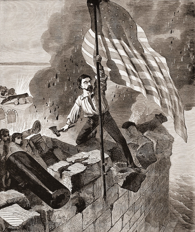 Sergeant Hard will be remembered for valiantly leaving New York to join in the defense of Fort Sumter in January 1861. Major Robert Anderson, Commander of Fort Sumter, had served with him in the Mexican American War. As tensions between the North and South increased, Major Anderson’s wife requested Sergeant Hart join the defense of Fort Sumter. Early in the morning of April 12, 1861 the first shots of the American Civil War rang out. By afternoon the shelling had knocked the American flag from the flagstaff flying over the fort. Sergeant Hart proudly retrieved the fallen flag, climbed up the flagstaff and successfully reattached it. His refusal to allow the flag to lie torn and tattered serves as a symbol of the unwavering spirit of all Americans who defend our Nation in the Civil War.