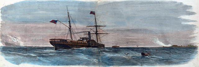 - The original version of this image was in the January 19, 1861, issue of Frank Leslie’s Illustrated Newspaper, captioned “Evacuation of Fort Moultrie by Major Anderson and the United States Troops on Christmas Night, 1860 —The Troops Conveying Powder and other Stores in Sloops to Fort Sumpter (sic).” The color version is one of the special handed-tinted off-prints that were also sold separately from the newspaper.